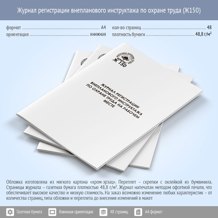 Журнал регистрации внепланового инструктажа по охране труда (48 стр., Ж150) в Ижевске купить