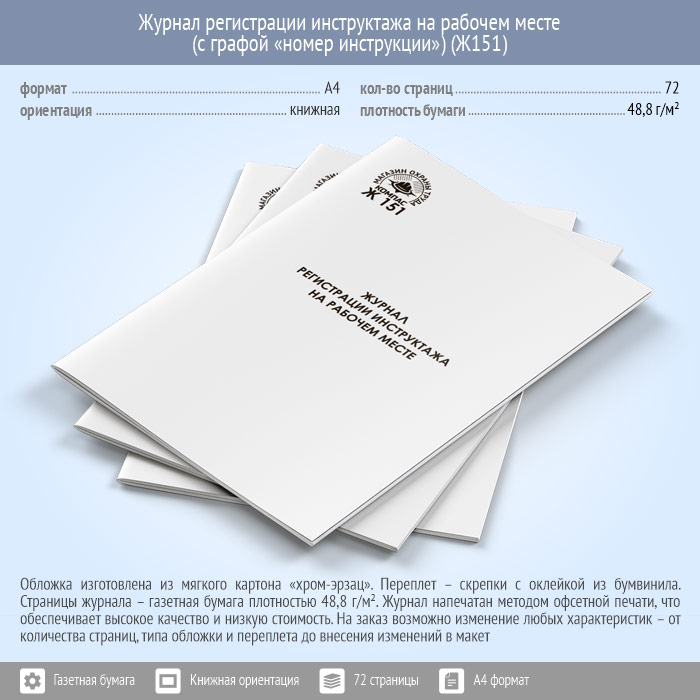 Журнал регистрации инструктажа на рабочем месте (с графой «номер инструкции») (72 стр., Ж151) в Ижевске купить