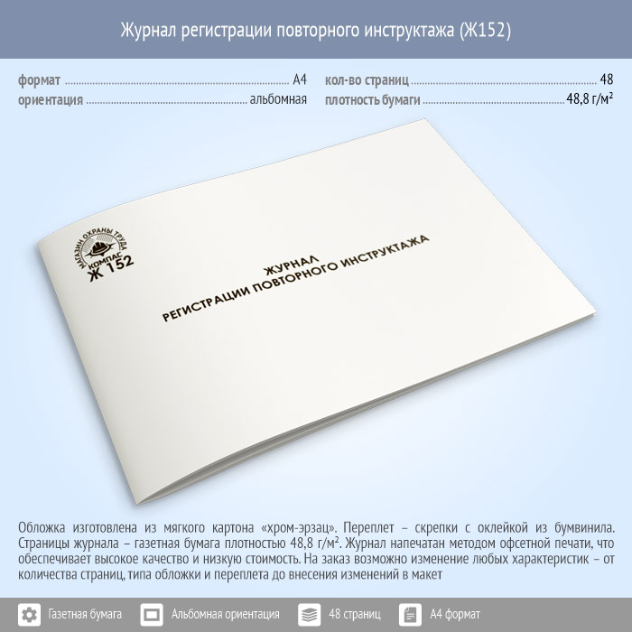 Журнал регистрации повторного инструктажа (48 стр., Ж152) в Ижевске купить