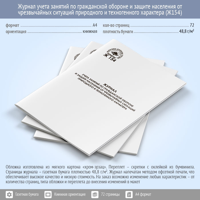 Журнал учета занятий по гражданской обороне и защите населения от чрезвычайных ситуаций природного и техногенного характера (72 стр., Ж154) в Ижевске купить