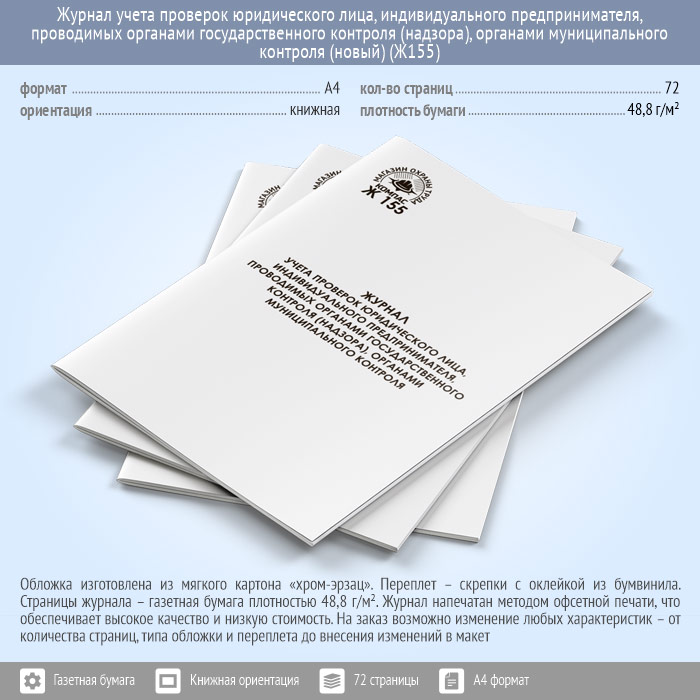 Журнал учета проверок юридического лица, индивидуального предпринимателя, проводимых органами государственного контроля (надзора), органами муниципального контроля (новый) (72 стр., Ж155) в Ижевске купить