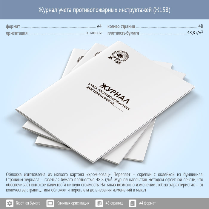 Журнал учета противопожарных инструктажей (48 стр., Ж158) в Ижевске купить