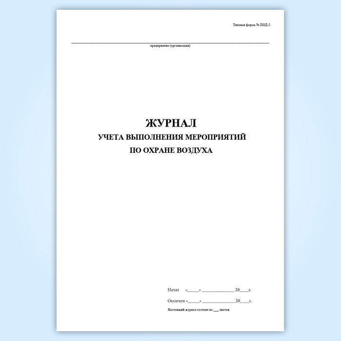 Журнал учета выполнения мероприятий по охране воздуха (форма ПОД-2) в Ижевске купить