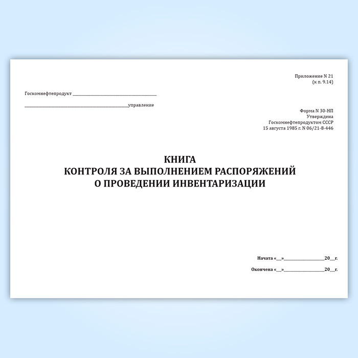 Книга контроля за выполнением распоряжений о проведении инвентаризации (форма № 30-НП) в Ижевске купить