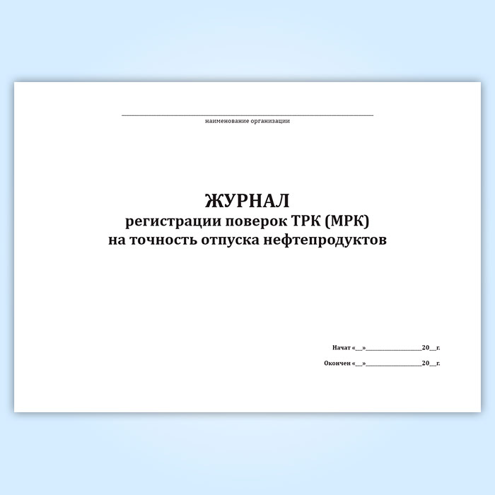 Журнал регистрации поверок ТРК (МРК) на точность отпуска нефтепродуктов в Ижевске купить