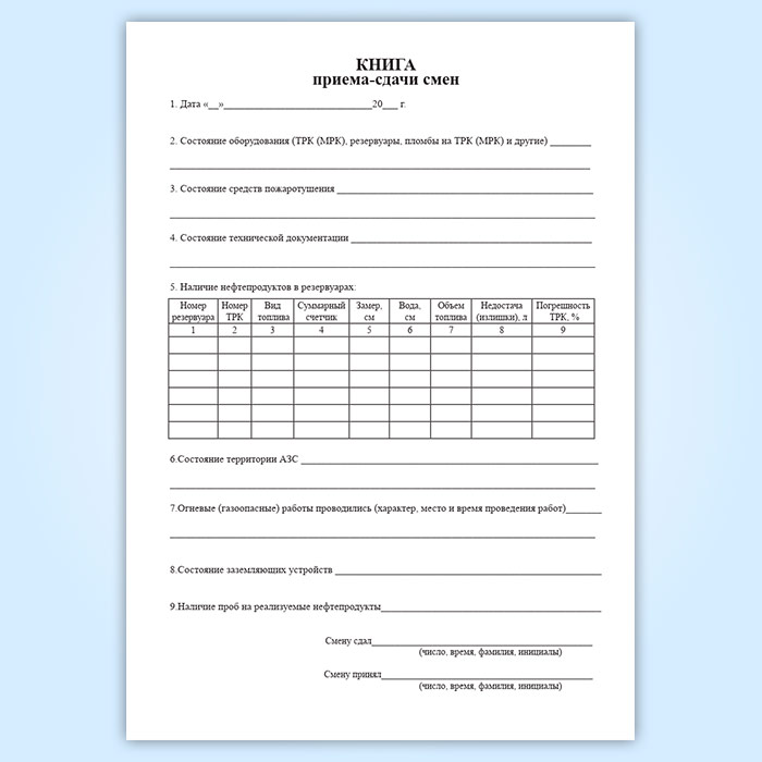 Книга приема-сдачи смен АЗС в Ижевске купить