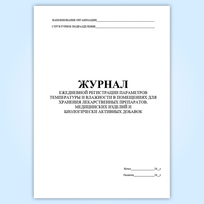 Журнал ежедневной регистрации параметров температуры и влажности в помещениях для хранения лекарственных препаратов, медицинских изделий и биологически активных добавок в Ижевске купить