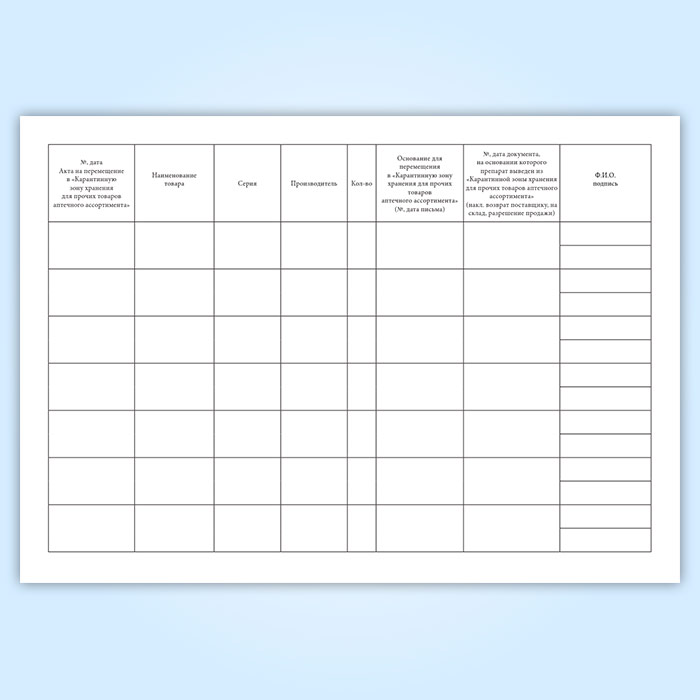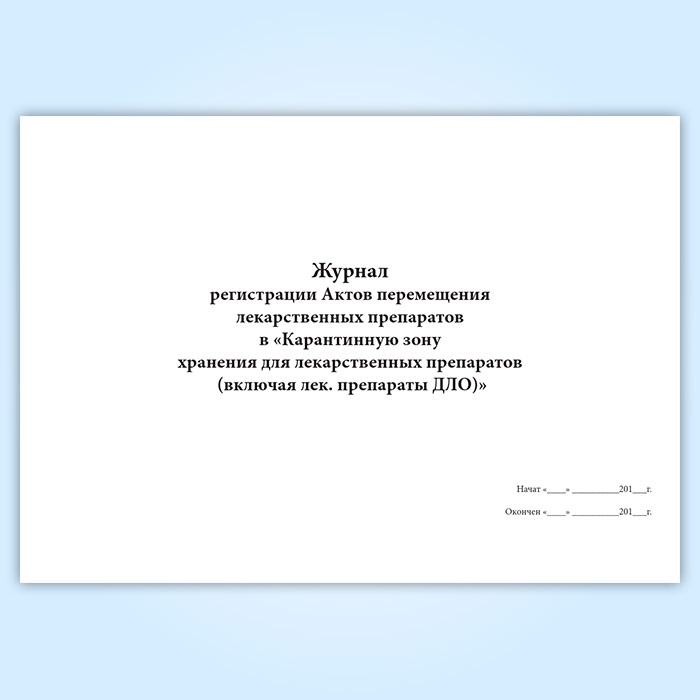 Журнал регистрации Актов перемещения лекарственных препаратов в «Карантинную зону хранения для лекарственных препаратов (включая лек. препараты ДЛО)» в Ижевске купить
