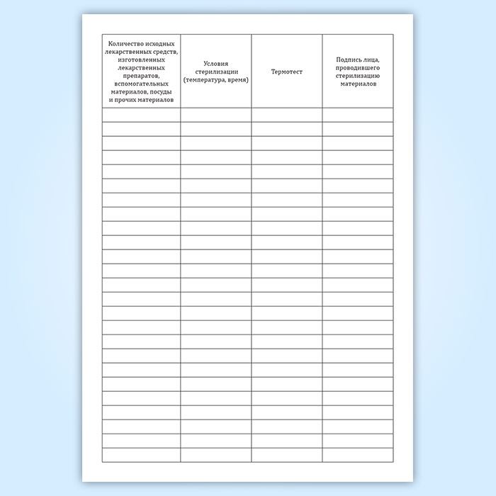 Журнал регистрации режима стерилизации исходных лекарственных средств, изготовленных лекарственных препаратов, вспомогательных материалов, посуды и прочих материалов в Ижевске купить
