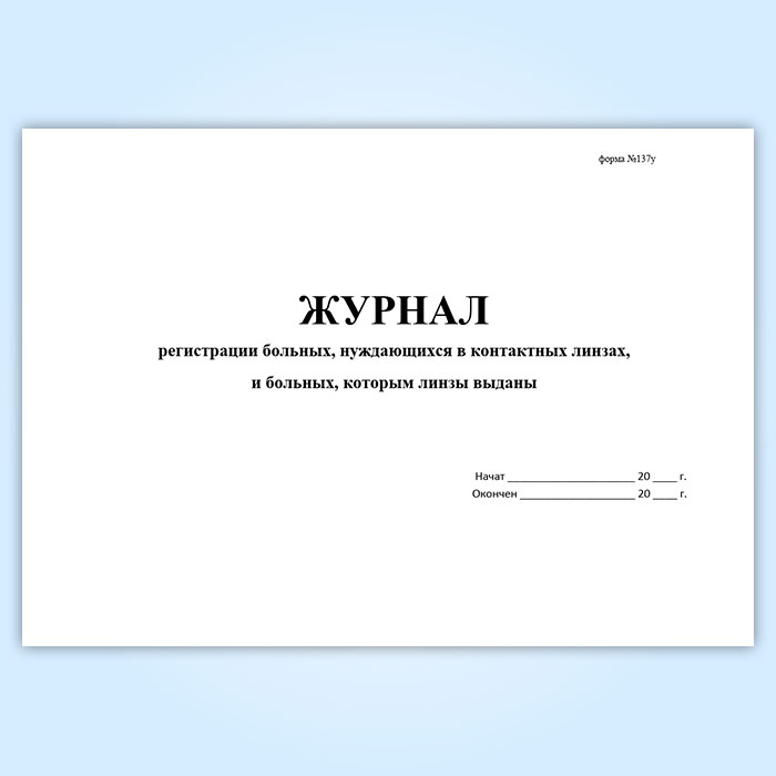 Журнал регистрации больных, нуждающихся в контактных линзах, и больных, которым линзы выданы (форма № 137/у) в Ижевске купить