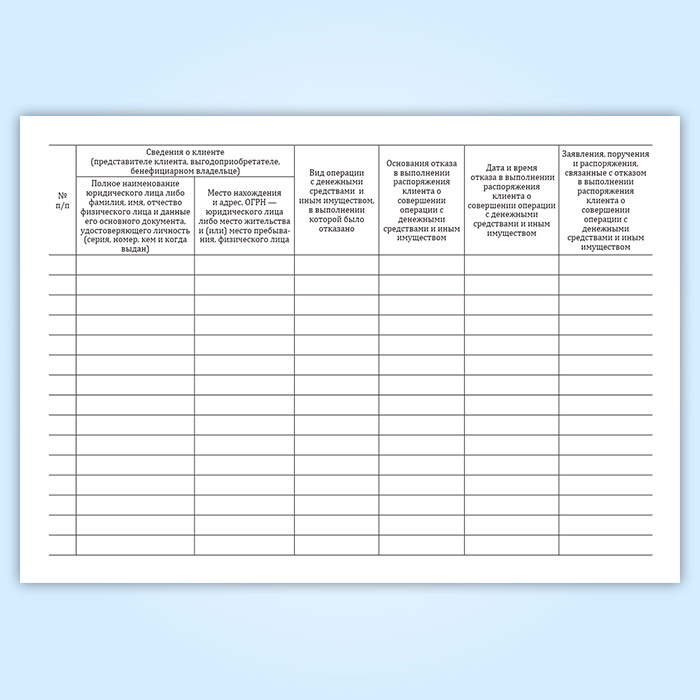 Журнал учета отказов в выполнении распоряжения клиентов о совершении операции с денежными средствами и иным имуществом в Ижевске купить