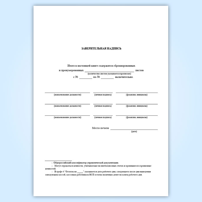 Вы получаете печатную продукцию прошнурованной и c местом для вашей печати в соответствии с действующими нормативными документами: