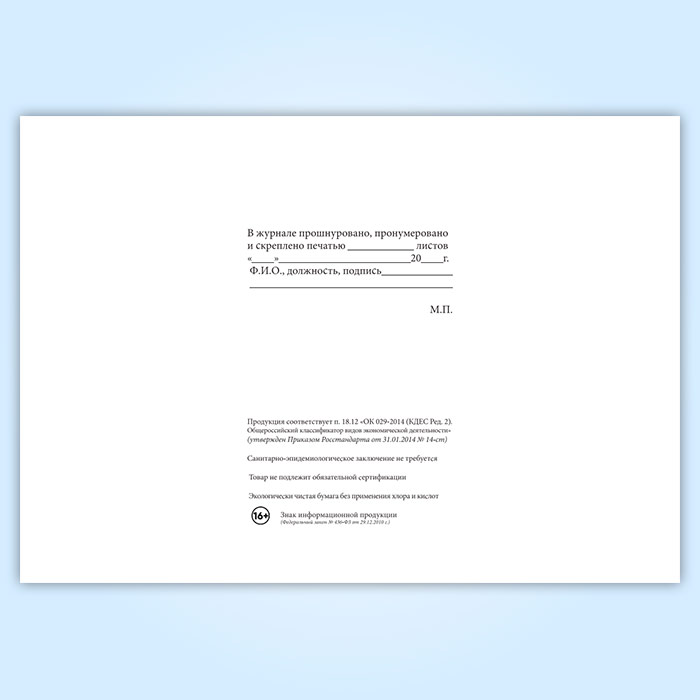 Вы получаете печатную продукцию прошнурованной и c местом для вашей печати в соответствии с действующими нормативными документами: