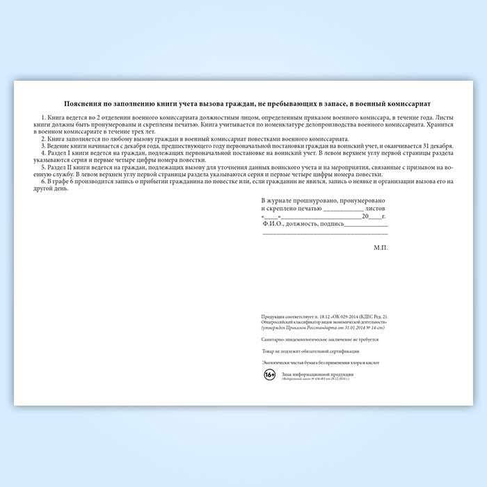 Вы получаете печатную продукцию прошнурованной и c местом для вашей печати в соответствии с действующими нормативными документами: