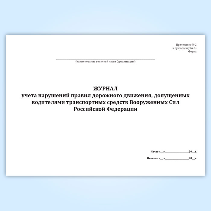 Журнал учета нарушений правил дорожного движения, допущенных водителями транспортных средств Вооруженных Сил Российской Федерации в Ижевске купить