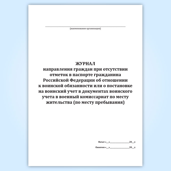 Журнал направления граждан при отсутствии отметок в паспорте гражданина Российской Федерации об отношении к воинской обязанности или о постановке на воинский учет в документах воинского учета в военный комиссариат по месту жительства (по месту пребывания) в Ижевске купить