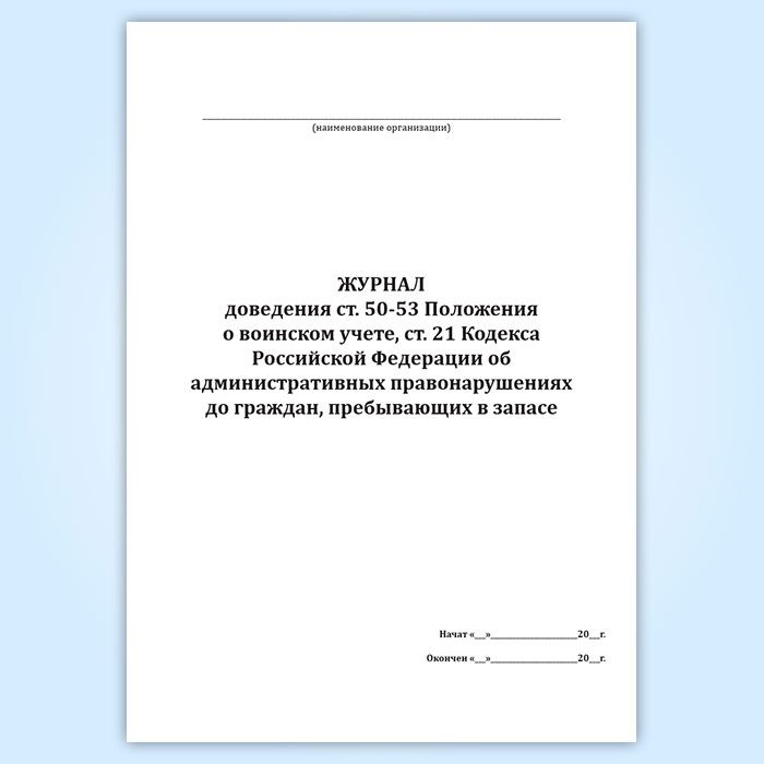 Журнал доведения ст. 50-53 Положения о воинском учете, ст. 21 Кодекса Российской Федерации об административных правонарушениях до граждан, пребывающих в запасе в Ижевске купить