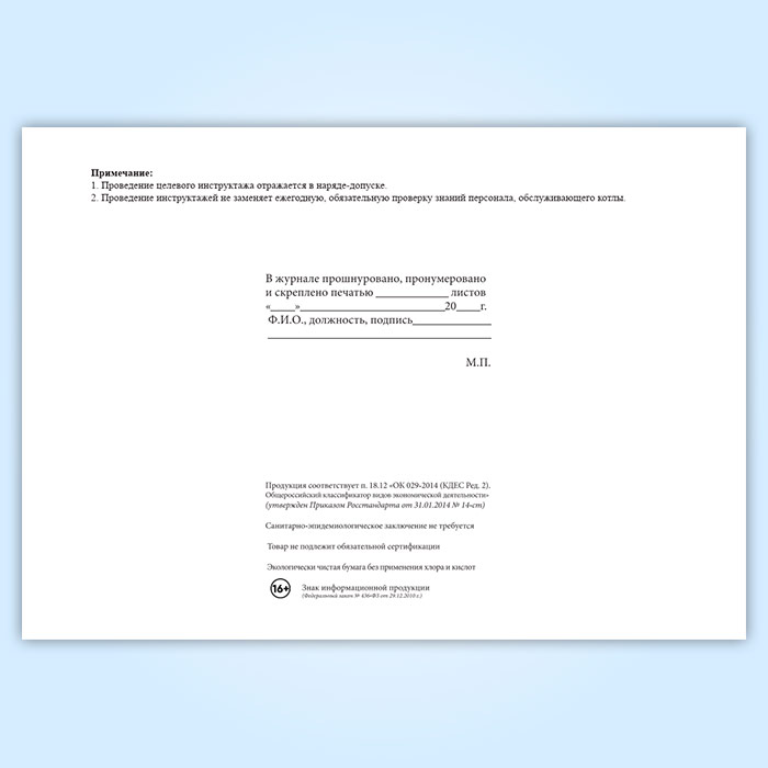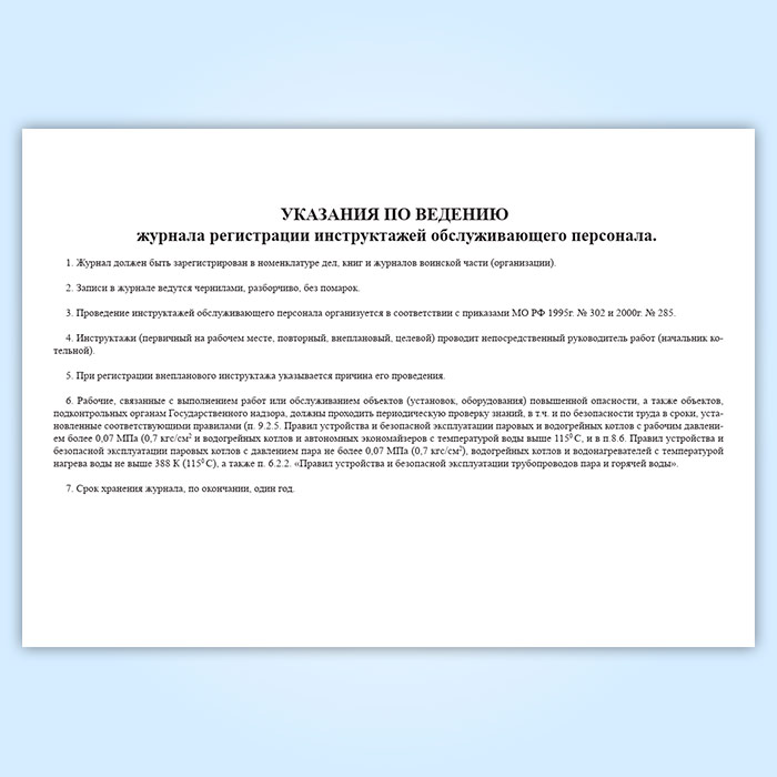 Журнал регистрации инструктажей обслуживающего персонала котельной (для воинских частей, предприятий и организаций) в Ижевске купить