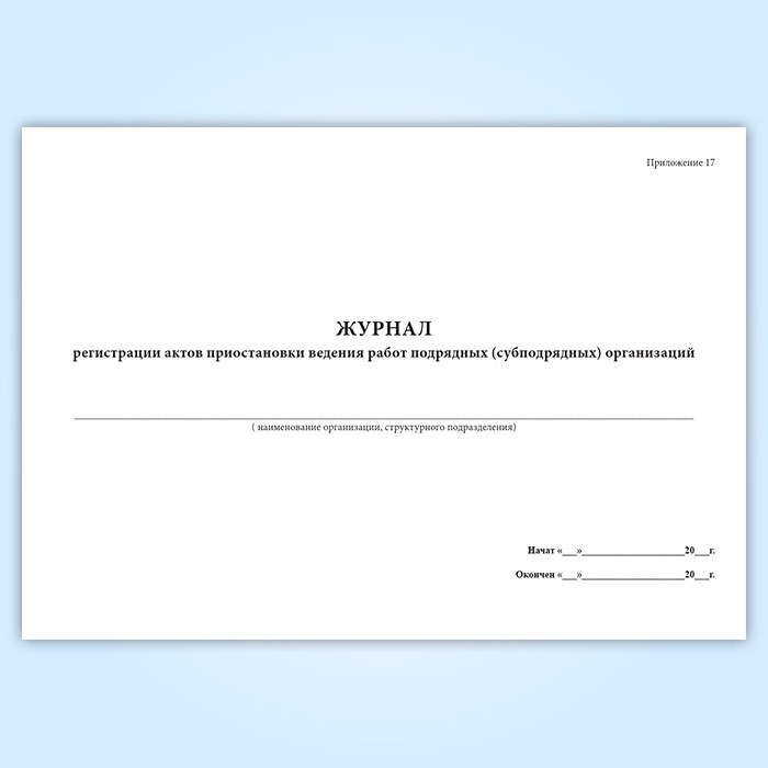 Журнал регистрации актов приостановки ведения работ подрядных (субподрядных) организаций в Ижевске купить