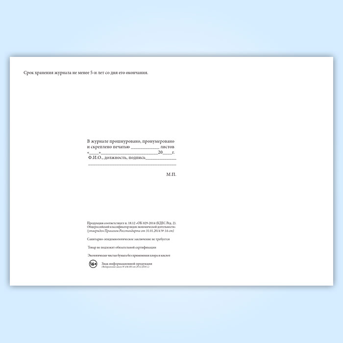 Вы получаете печатную продукцию прошнурованной и c местом для вашей печати в соответствии с действующими нормативными документами: