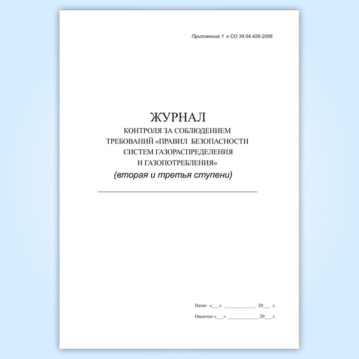 Журнал контроля за соблюдением требований Правил безопасности систем газораспределения и газопотребления (вторая и третья ступени) в Ижевске купить