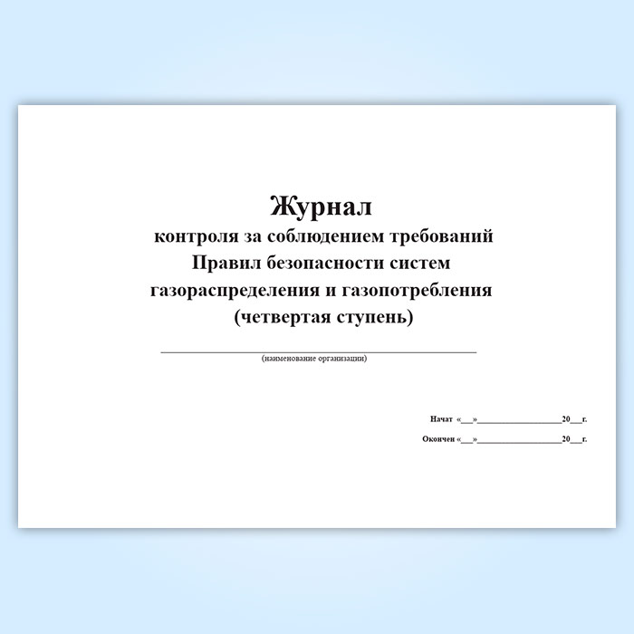 Журнал контроля за соблюдением требований Правил безопасности систем газораспределения и газопотребления (четвертая ступень) в Ижевске купить
