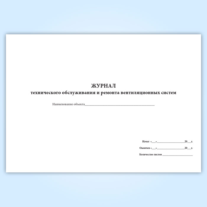 Журнал технического обслуживания и ремонта вентиляционных систем в Ижевске купить