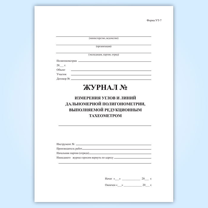 Журнал измерения углов и дальномерной полигонометрии, выполняемой редукционным тахеометром (форма УТ-7) в Ижевске купить