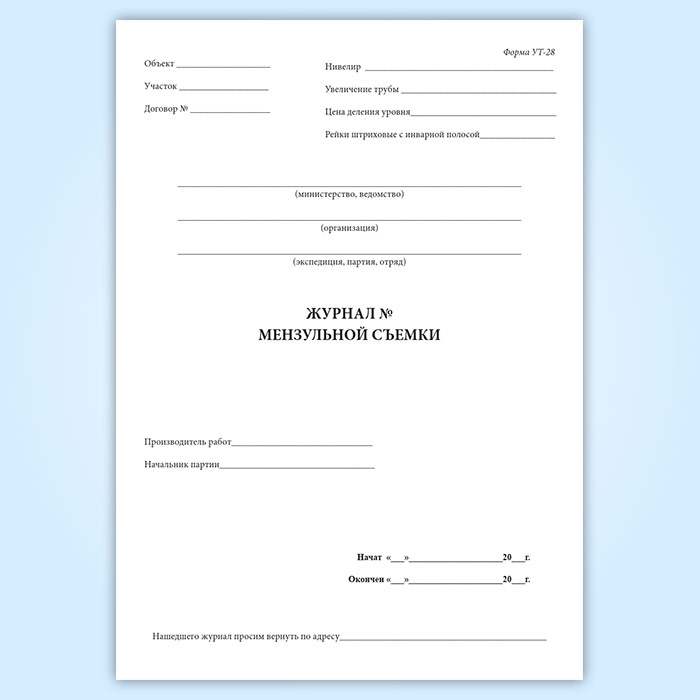 Журнал мензуальной съемки (форма УТ-28) в Ижевске купить