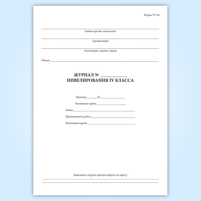Журнал нивелирования IV класса (форма УТ-10) в Ижевске купить