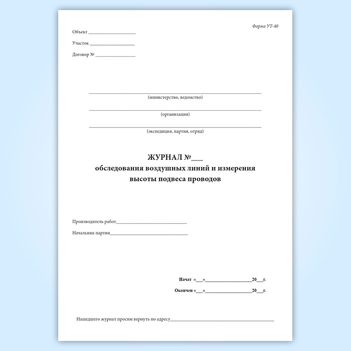 Журнал обследования воздушных линий и высоты подвеса проводов (форма УТ-40) в Ижевске купить