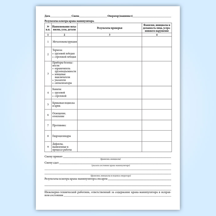 Вахтенный журнал приема-сдачи смен машинистами крана-манипулятора в Ижевске купить