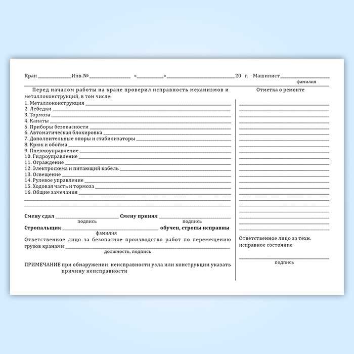 Вахтенный журнал г/п крана в Ижевске купить