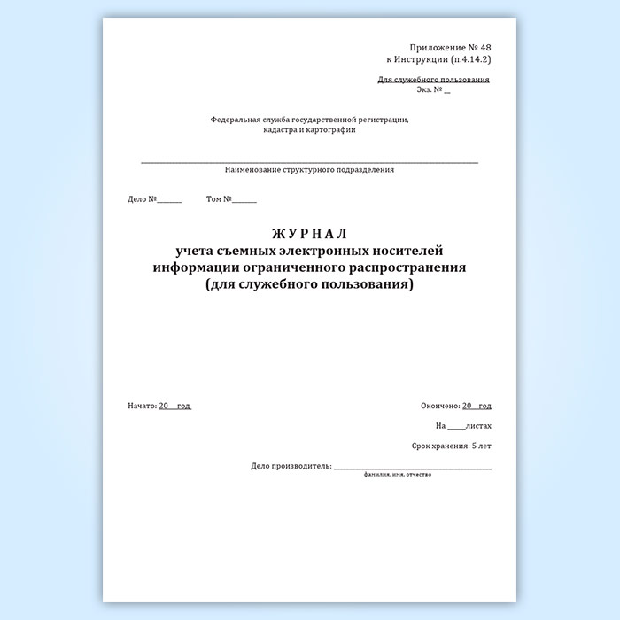 Журнал учета съемных электронных носителей информации ограниченного распространения (для служебного пользования) в Ижевске купить