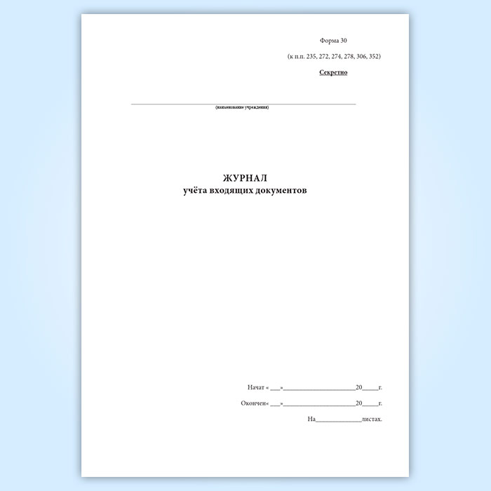 Журнал учета входящих документов (форма № 30) в Ижевске купить