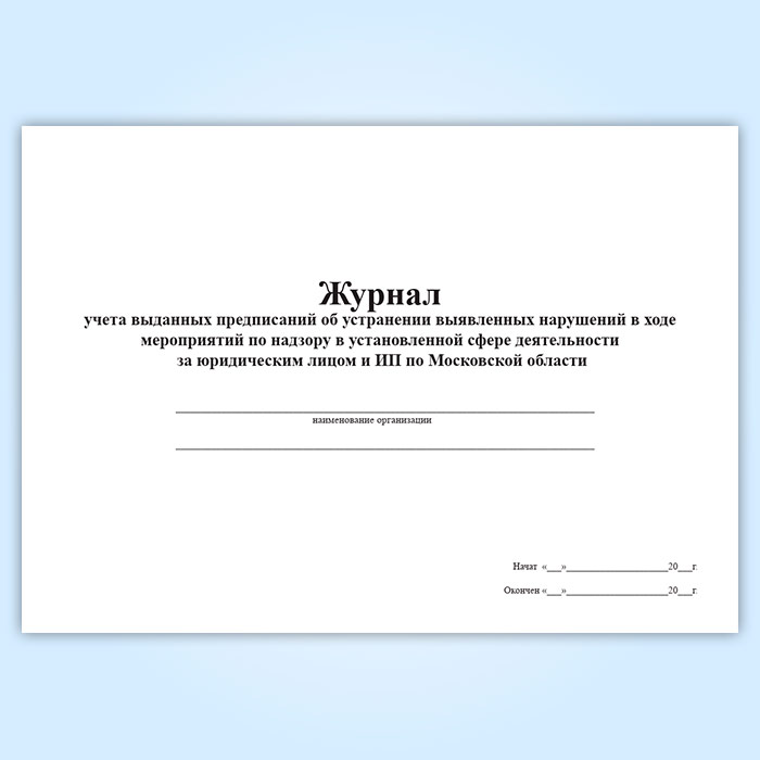Журнал учета выданных предписаний об устранении выявленных нарушений в ходе мероприятий по надзору в установленной сфере деятельности за юридическим лицом и ИП по Московской области в Ижевске купить