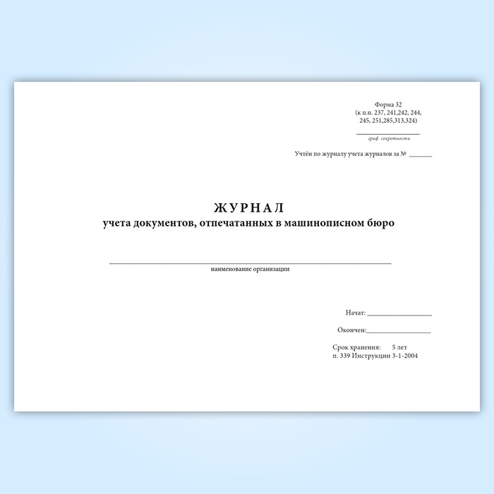 Журнал учета документов, отпечатанных в машинописном бюро (форма 32) в Ижевске купить