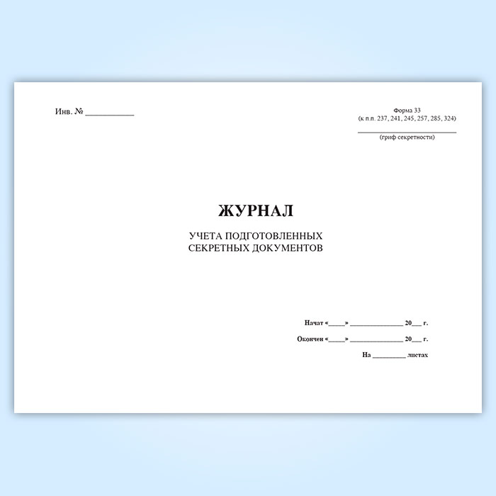 Журнал учета подготовленных секретных документов (форма 33) в Ижевске купить
