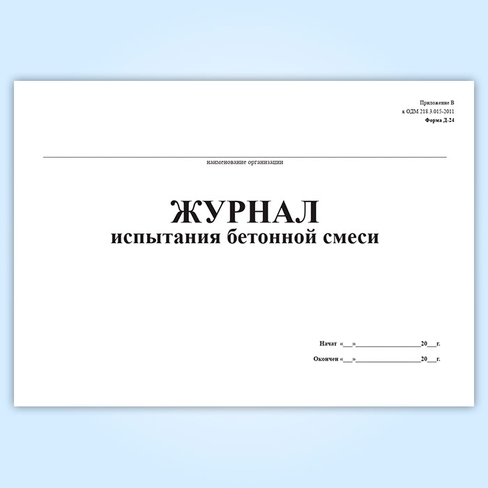 Журнал испытания бетонной смеси (форма № Д-24) в Ижевске купить