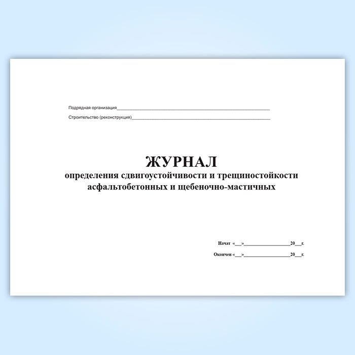 Журнал определения сдвигоустойчивости и трещиностойкости асфальтобетонных и щебеночно-мастичных покрытий в Ижевске купить