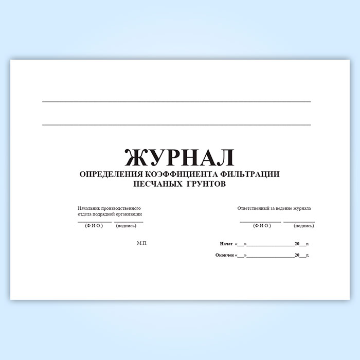 Журнал определения коэффициента фильтрации песчаных грунтов в Ижевске купить