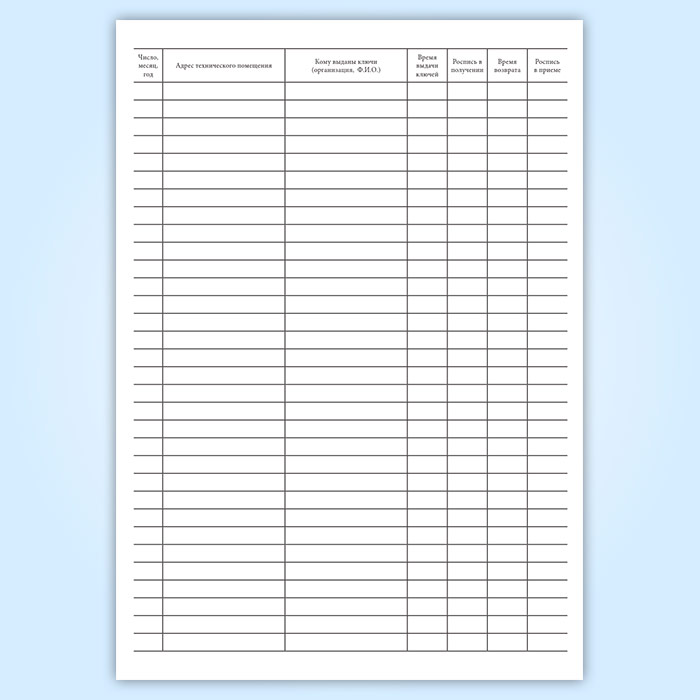 Журнал учета выдачи ключей от технических помещений, контролируемых ОДС в Ижевске купить