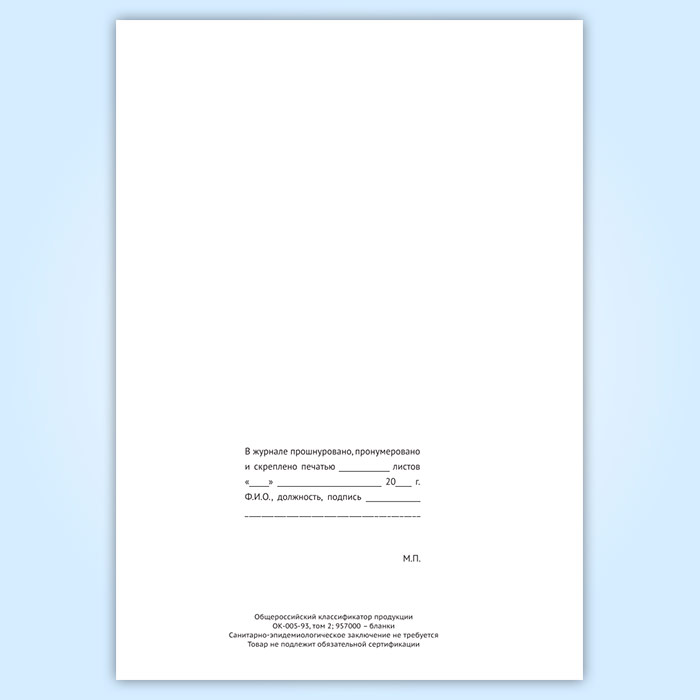 Вы получаете печатную продукцию прошнурованной и c местом для вашей печати в соответствии с действующими нормативными документами: