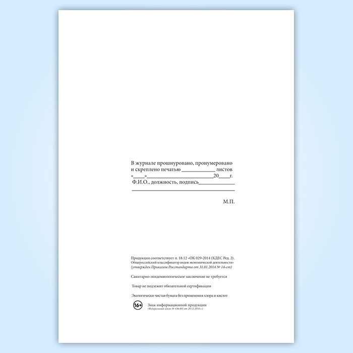 Вы получаете печатную продукцию прошнурованной и c местом для вашей печати в соответствии с действующими нормативными документами: