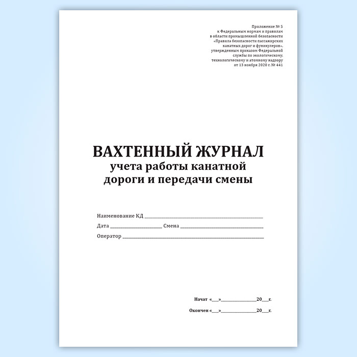 Вахтенный журнал учета работы канатной дороги и передачи смены в Ижевске купить