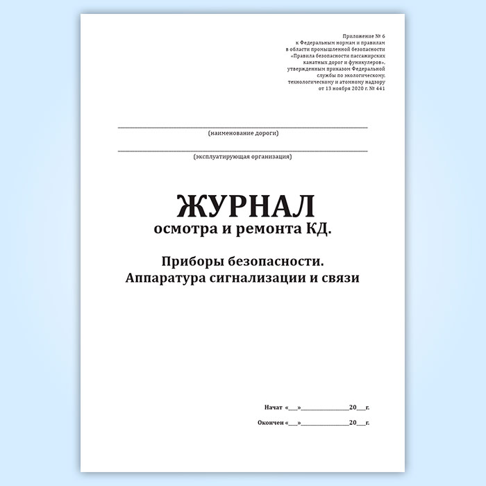 Журнал осмотра и ремонта канатной дороги. Приборы безопасности. Аппаратура сигнализации и связи (форма № 9) в Ижевске купить