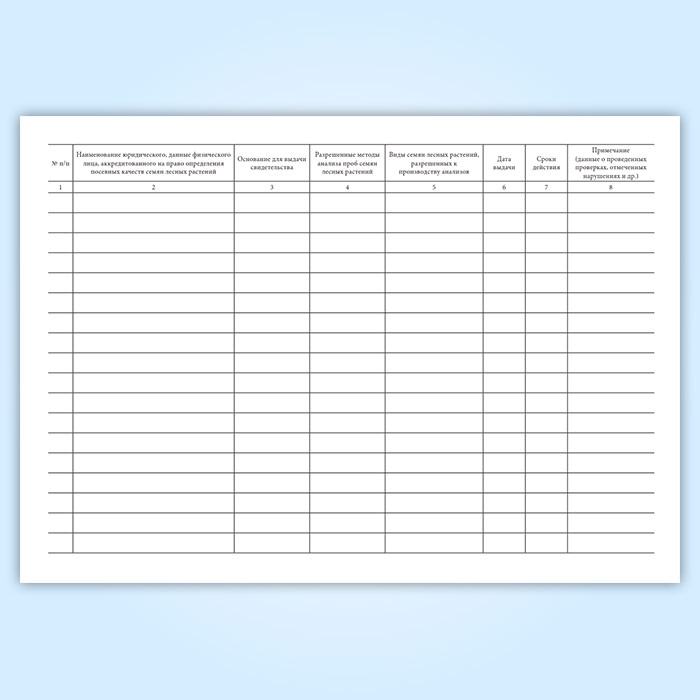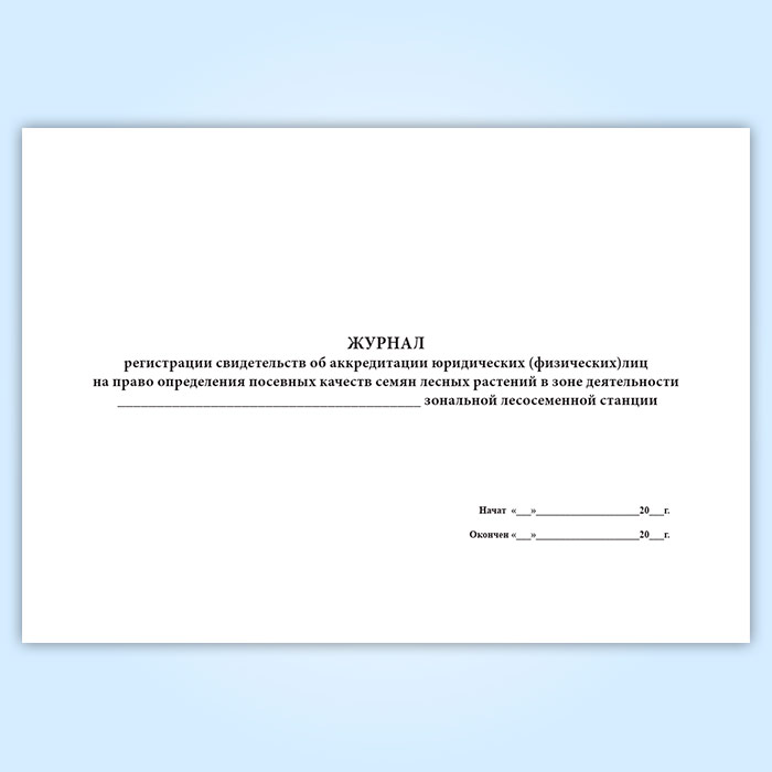 Журнал регистрации свидетельств об аккредитации юридических (физических) лиц на право определения посевных качеств семян лесных растений в зоне деятельности зональной лесосеменной станции в Ижевске купить