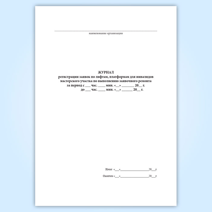 Журнал регистрации заявок по лифтам, платформам для инвалидов мастерского участка по выполнению заявочного ремонта в Ижевске купить