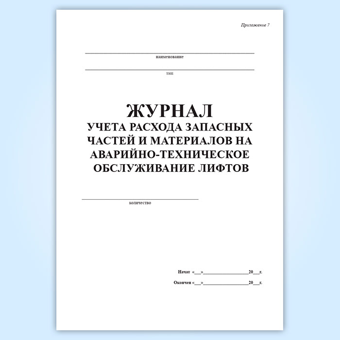 Журнал учета расхода запасных частей и материалов на аварийно-техническое обслуживание лифтов в Ижевске купить