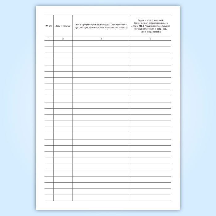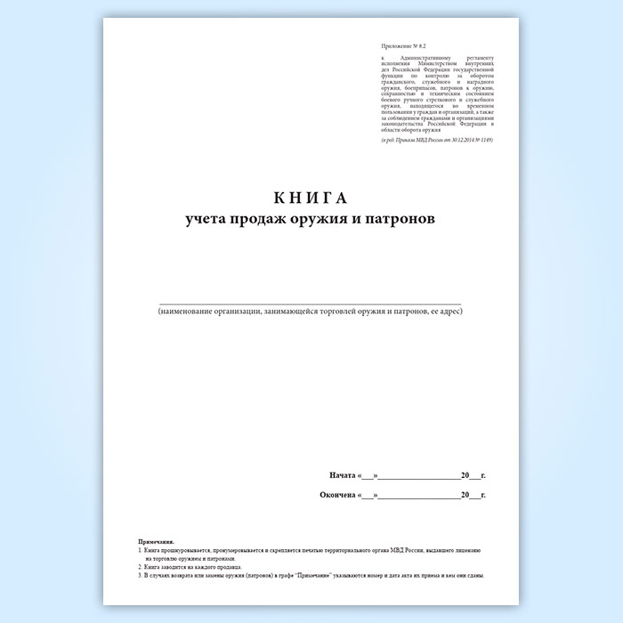 Книга учета продаж оружия и патронов (Приказ МВД России от 29.06.2012 N 646) в Ижевске купить